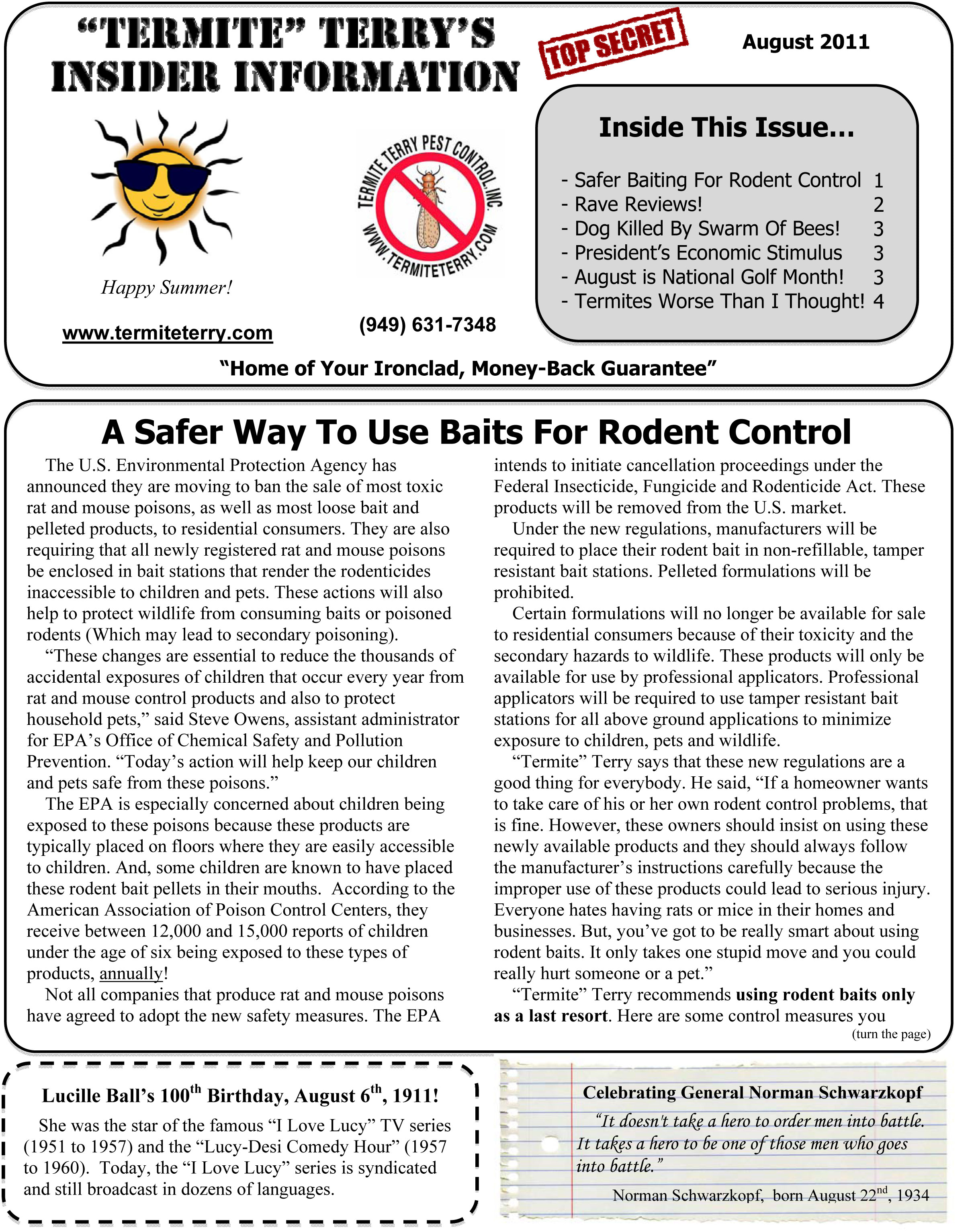 September 2011 Pest Control Newsletter