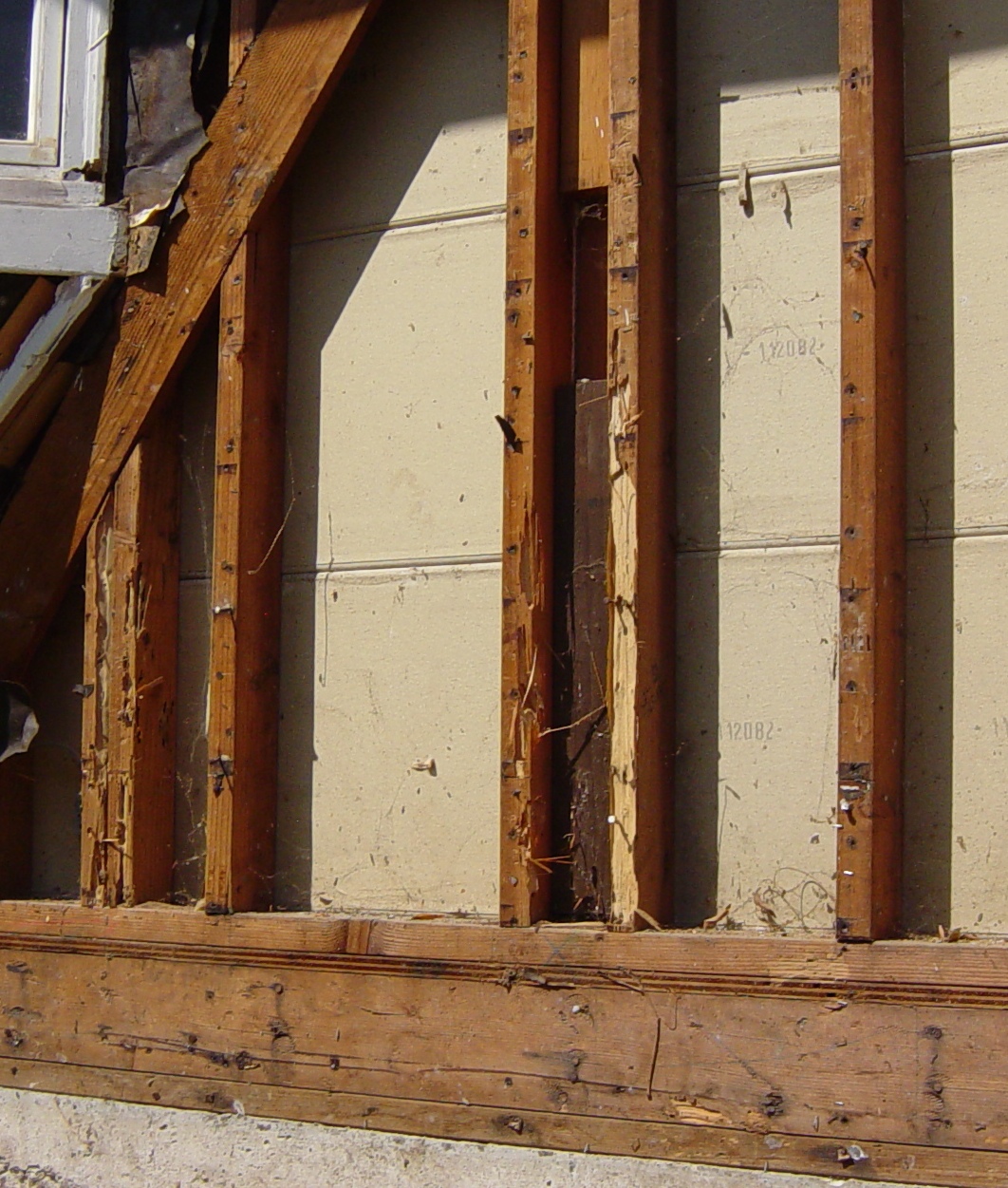 Look at the drywood termite damage in these wall studs